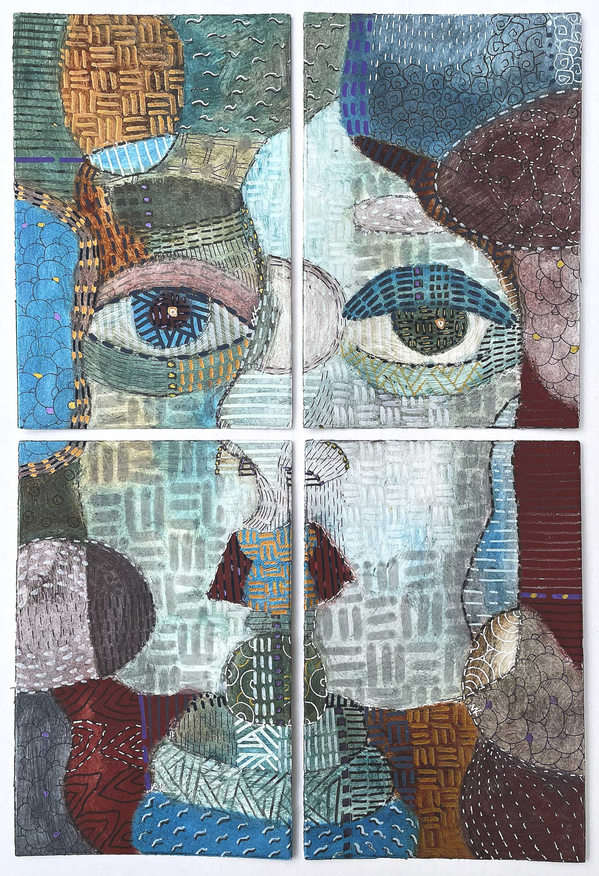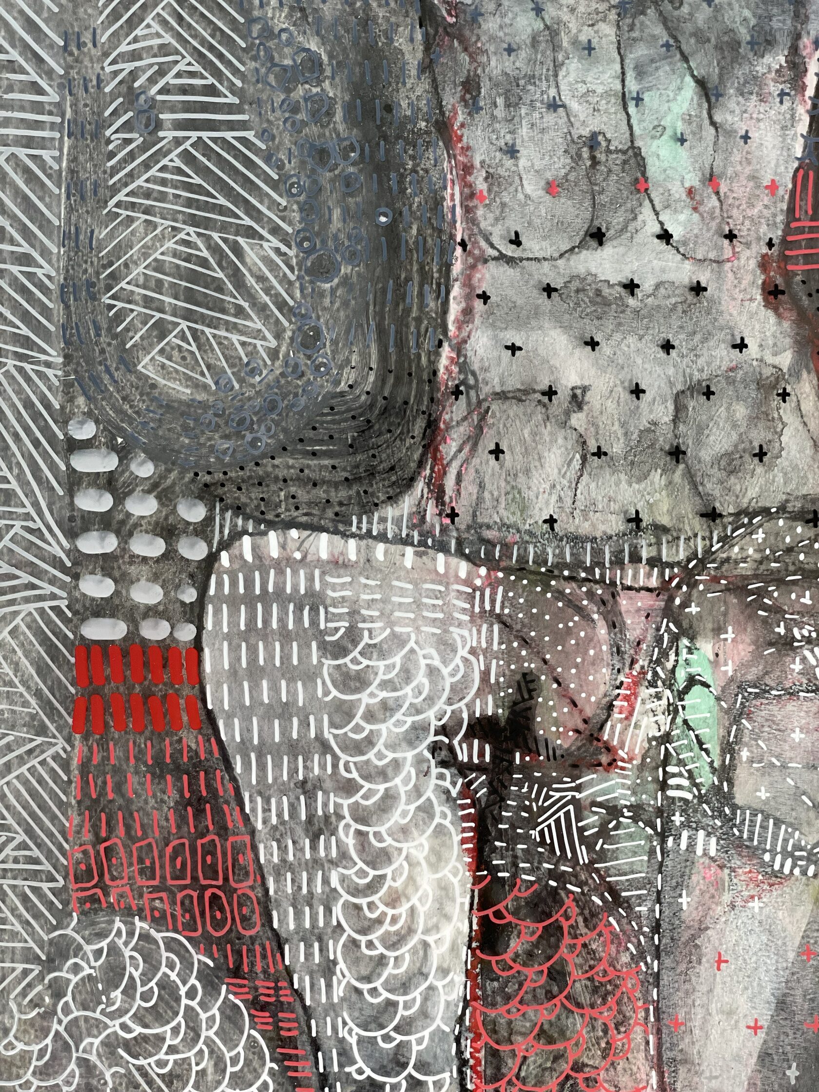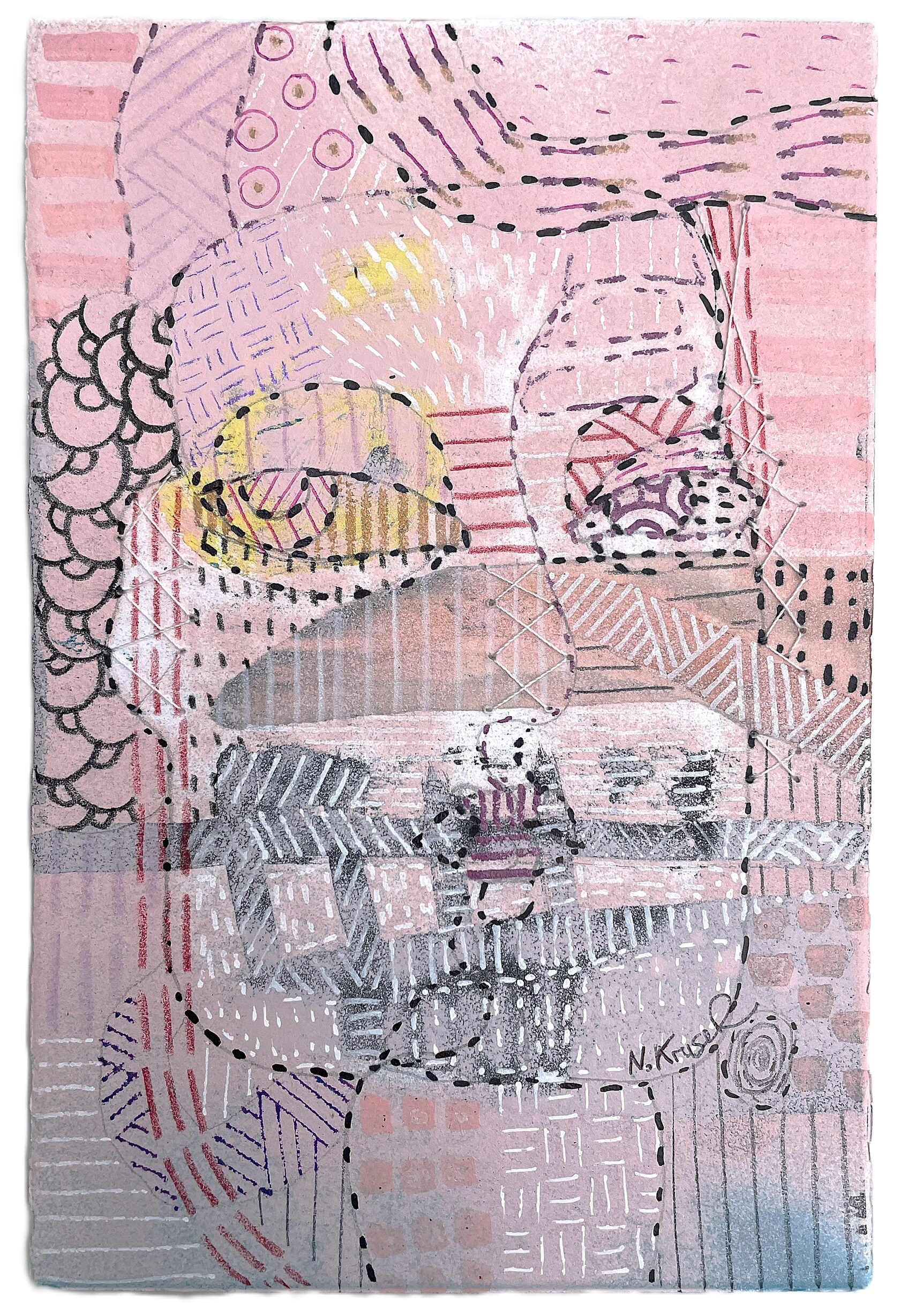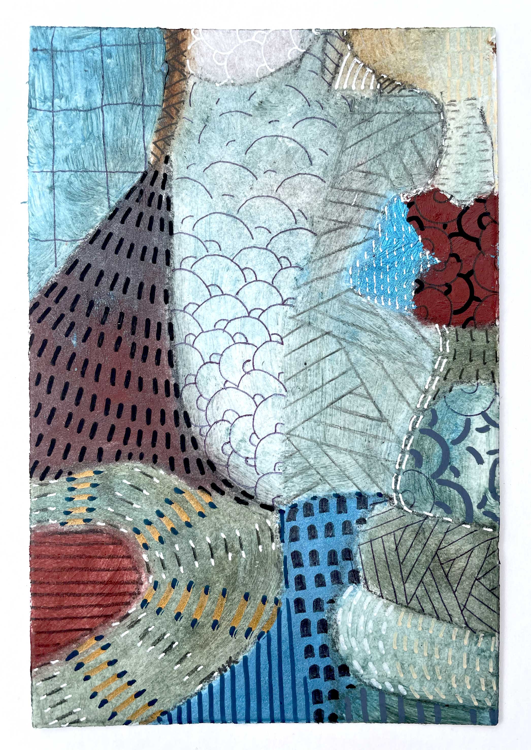 | über PAT in diesen Werken der Serien untersuche ich die vielschichtigen Strukturen menschlicher Erfahrung und Identität sowie den Einfluss der inneren Struktur auf die Welt um uns herum. [WIEDERKEHR] offenbart die Rückkehr des Überwundenen und die Zyklizität innerer Prozesse. [JA ORA NA] klingt wie ein Versprechen des Lebens, stellt jedoch die Grenze zwischen Entwicklung und Wiederholung in Frage. [LABYRINTH] greift den Archetyp des Weges als Form der Selbsterkenntnis und inneren Suche auf. [METAMORPHOSE] hält den Zustand des Übergangs, der Transformation von Form und Bedeutung fest. [EINGENÄHT–UMGENÄHT. EINGESCHRIEBEN] untersucht eingenähte und überschriebene Verhaltenskodizes, die sich im Gedächtnis überlagern. [KALEIDOSKOP] demonstriert die Vielfalt der Perspektiven und die Fragmentarität der Wahrnehmung. [WIR] verlagert den Fokus vom individuellen „Ich” zum kollektiven Körper. Zusammen bilden die Serien einen visuellen und konzeptuellen Dialog über die Wechselbeziehung zwischen innerem, kollektivem und umgebendem Raum. In these works from the series, I explore the complex structures of human experience and identity, as well as the influence of inner structure on the world around us. [WIEDERKEHR] reveals the return of the overcome and the cyclical nature of internal processes. [JA ORA NA] sounds like a promise of life, but questions the boundary between development and repetition. [LABYRINTH] refers to the archetype of the path as a form of self-knowledge and inner search. [METAMORPHOSE] captures the state of transition, the transformation of form and meaning. [EINGENÄHT–UMGENÄHT. EINGESCHRIEBEN] explores the sewn-in and rewritten behavioral codes that accumulate in memory. [KALEIDOSKOP] demonstrates the multiplicity of perspectives and the fragmentary nature of perception. [WIR] shifts the focus from the individual “I” to the collective body. Together, the series form a visual and conceptual dialogue about the interconnection between inner, collective, and surrounding space. |
