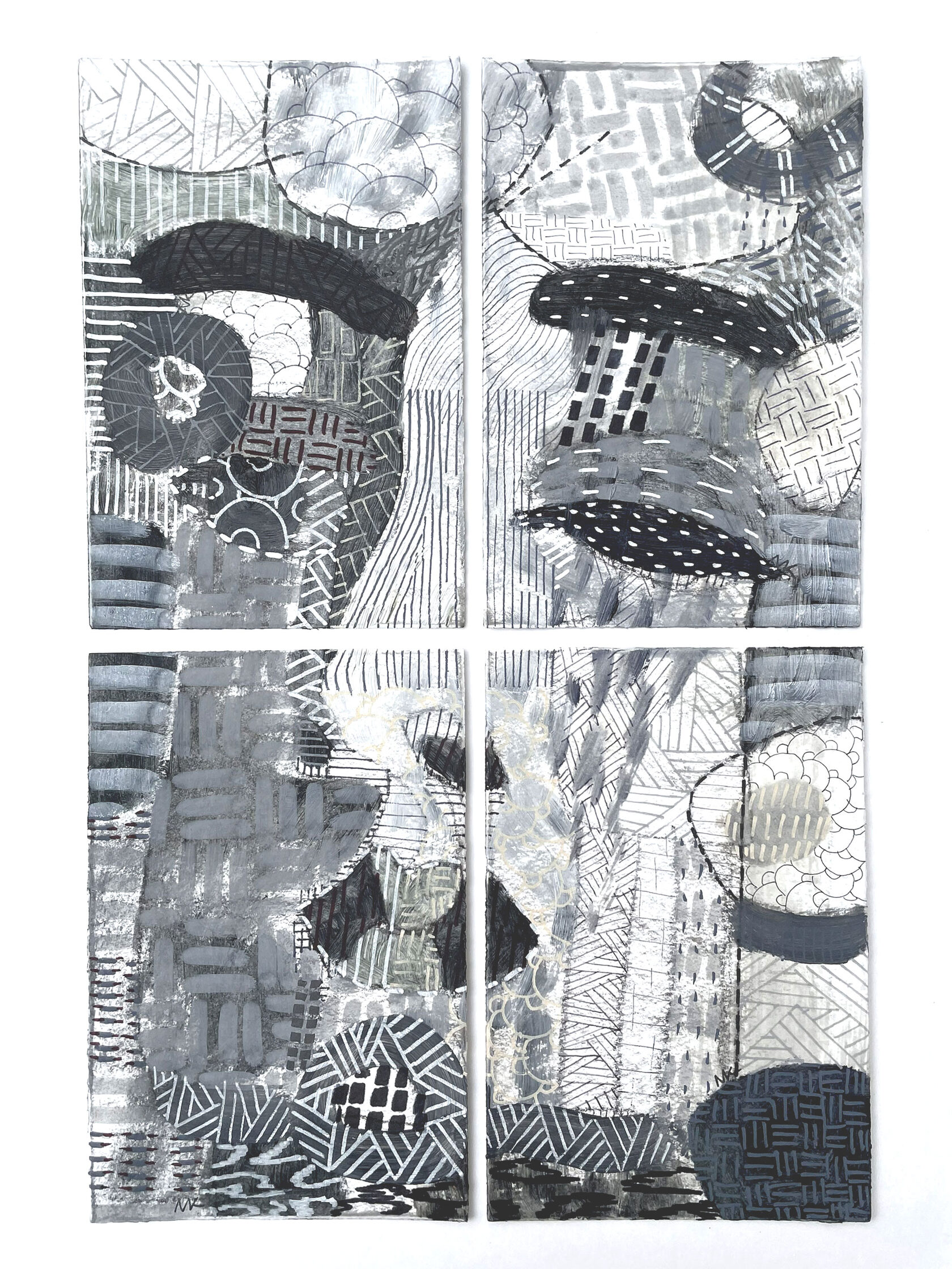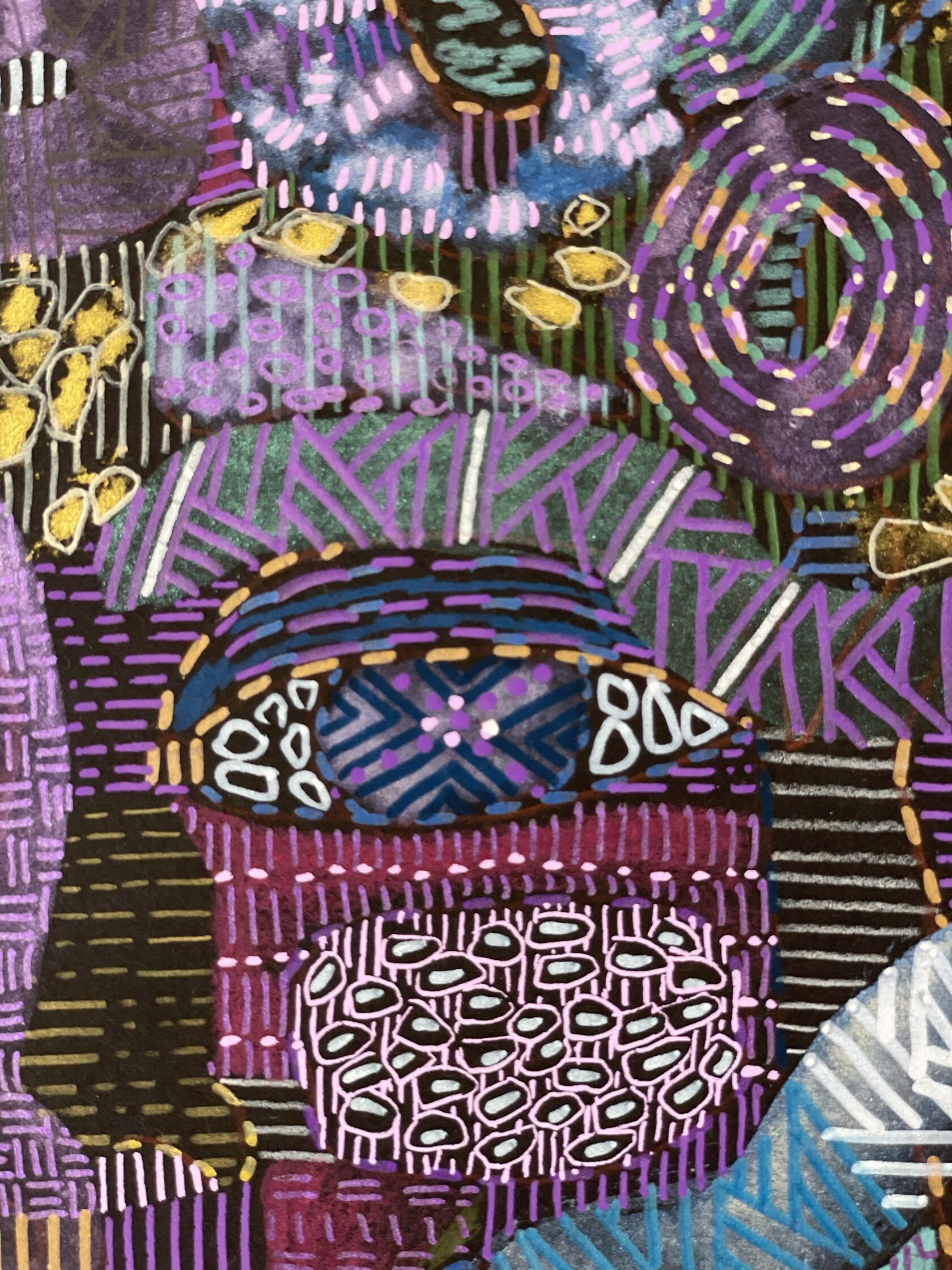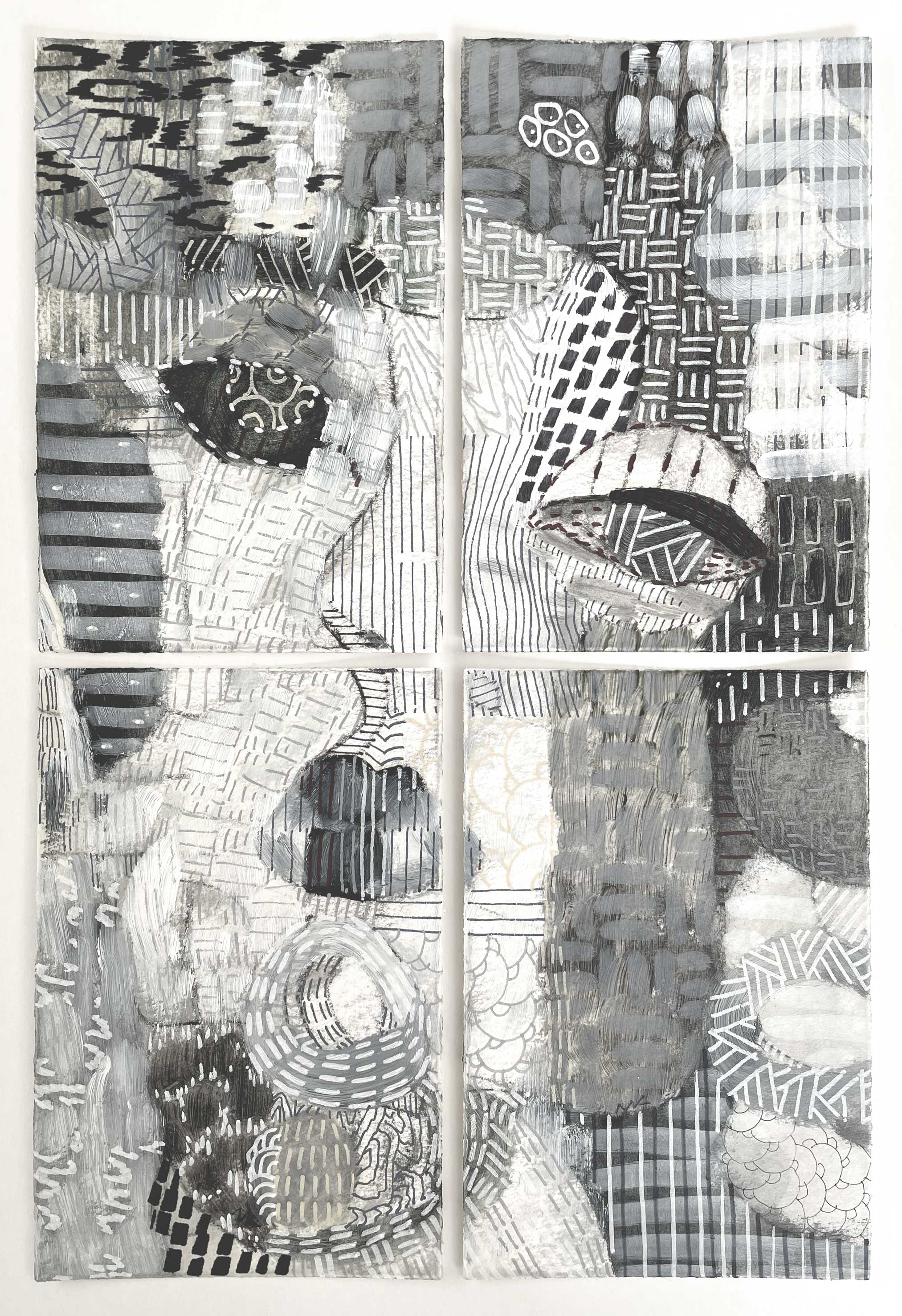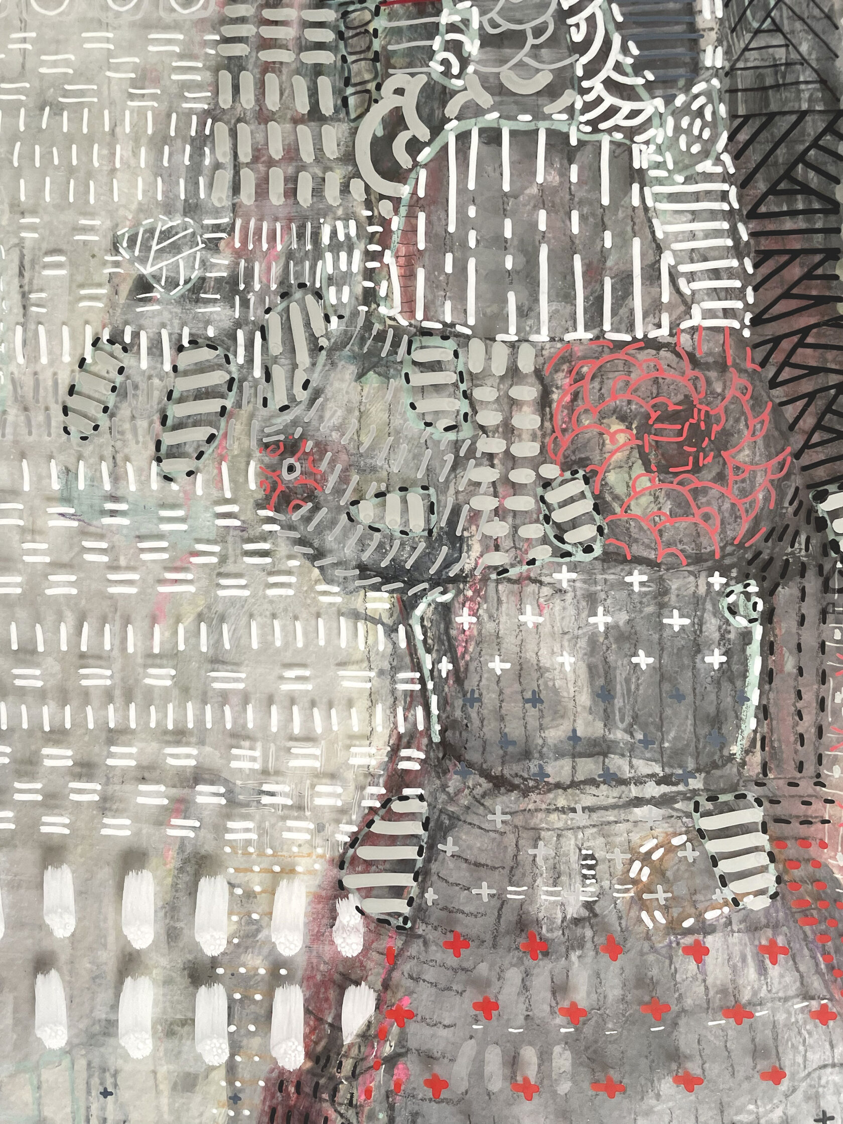 | über PAT in diesen Werken der Serien untersuche ich die vielschichtigen Strukturen menschlicher Erfahrung und Identität sowie den Einfluss der inneren Struktur auf die Welt um uns herum. [WIEDERKEHR] offenbart die Rückkehr des Überwundenen und die Zyklizität innerer Prozesse. [JA ORA NA] klingt wie ein Versprechen des Lebens, stellt jedoch die Grenze zwischen Entwicklung und Wiederholung in Frage. [LABYRINTH] greift den Archetyp des Weges als Form der Selbsterkenntnis und inneren Suche auf. [METAMORPHOSE] hält den Zustand des Übergangs, der Transformation von Form und Bedeutung fest. [EINGENÄHT–UMGENÄHT. EINGESCHRIEBEN] untersucht eingenähte und überschriebene Verhaltenskodizes, die sich im Gedächtnis überlagern. [KALEIDOSKOP] demonstriert die Vielfalt der Perspektiven und die Fragmentarität der Wahrnehmung. [WIR] verlagert den Fokus vom individuellen „Ich” zum kollektiven Körper. Zusammen bilden die Serien einen visuellen und konzeptuellen Dialog über die Wechselbeziehung zwischen innerem, kollektivem und umgebendem Raum. In these works from the series, I explore the complex structures of human experience and identity, as well as the influence of inner structure on the world around us. [WIEDERKEHR] reveals the return of the overcome and the cyclical nature of internal processes. [JA ORA NA] sounds like a promise of life, but questions the boundary between development and repetition. [LABYRINTH] refers to the archetype of the path as a form of self-knowledge and inner search. [METAMORPHOSE] captures the state of transition, the transformation of form and meaning. [EINGENÄHT–UMGENÄHT. EINGESCHRIEBEN] explores the sewn-in and rewritten behavioral codes that accumulate in memory. [KALEIDOSKOP] demonstrates the multiplicity of perspectives and the fragmentary nature of perception. [WIR] shifts the focus from the individual “I” to the collective body. Together, the series form a visual and conceptual dialogue about the interconnection between inner, collective, and surrounding space. |