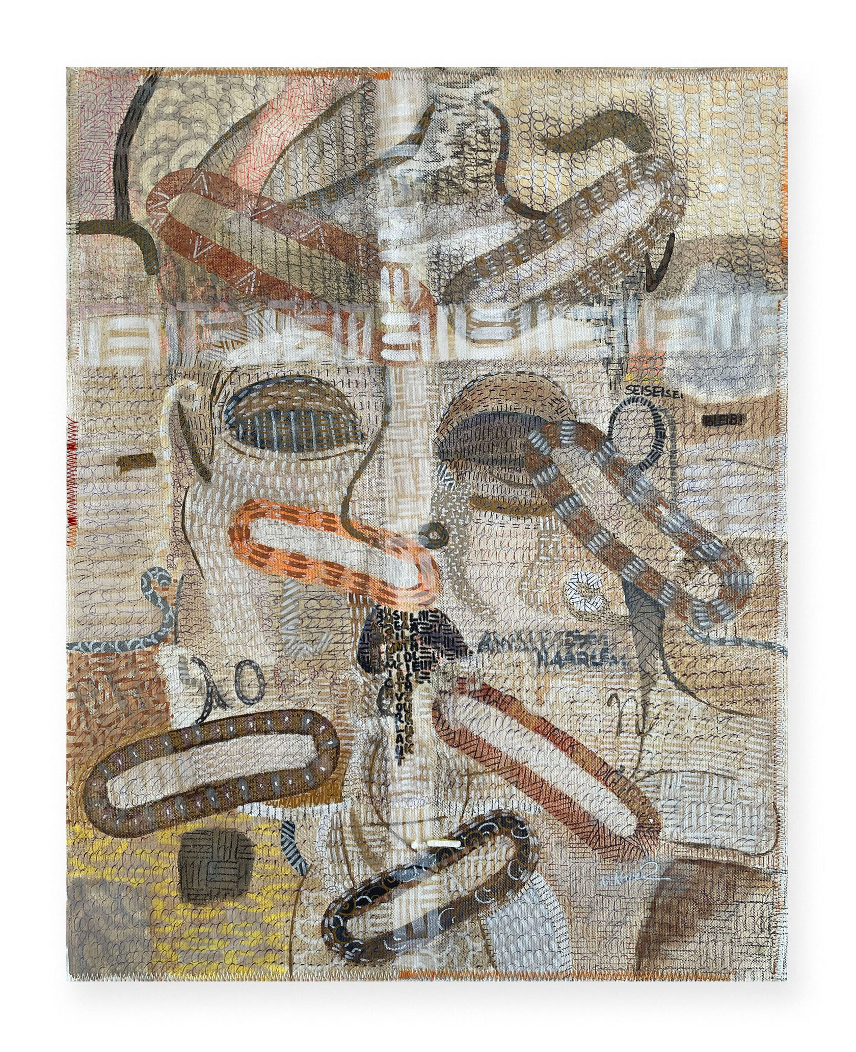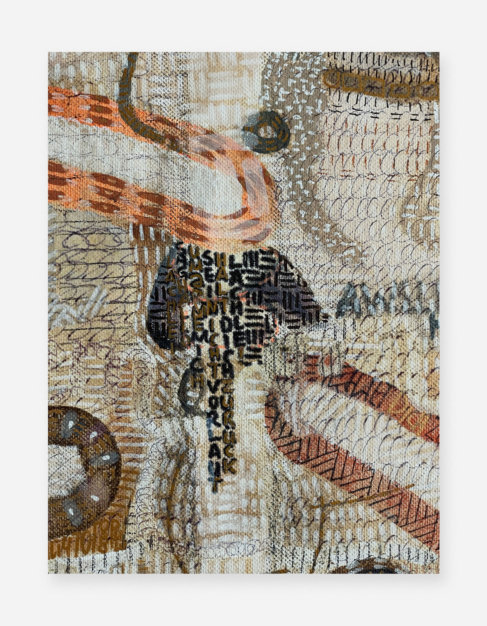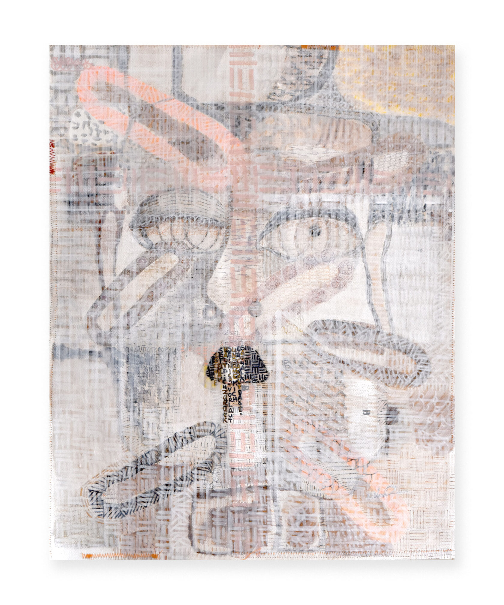 40 x 50 cm | Painting, graphic with textile interventions on canvas