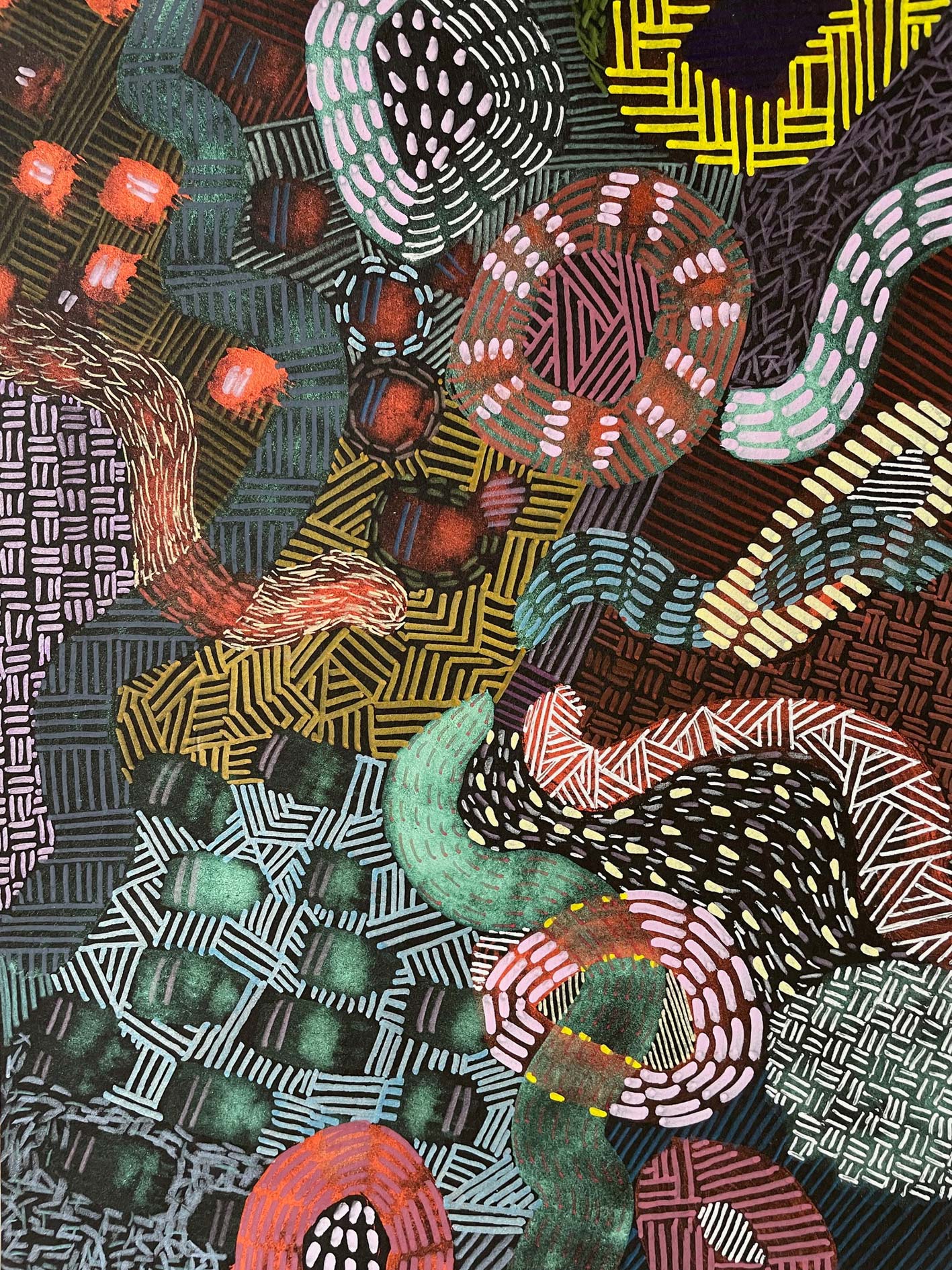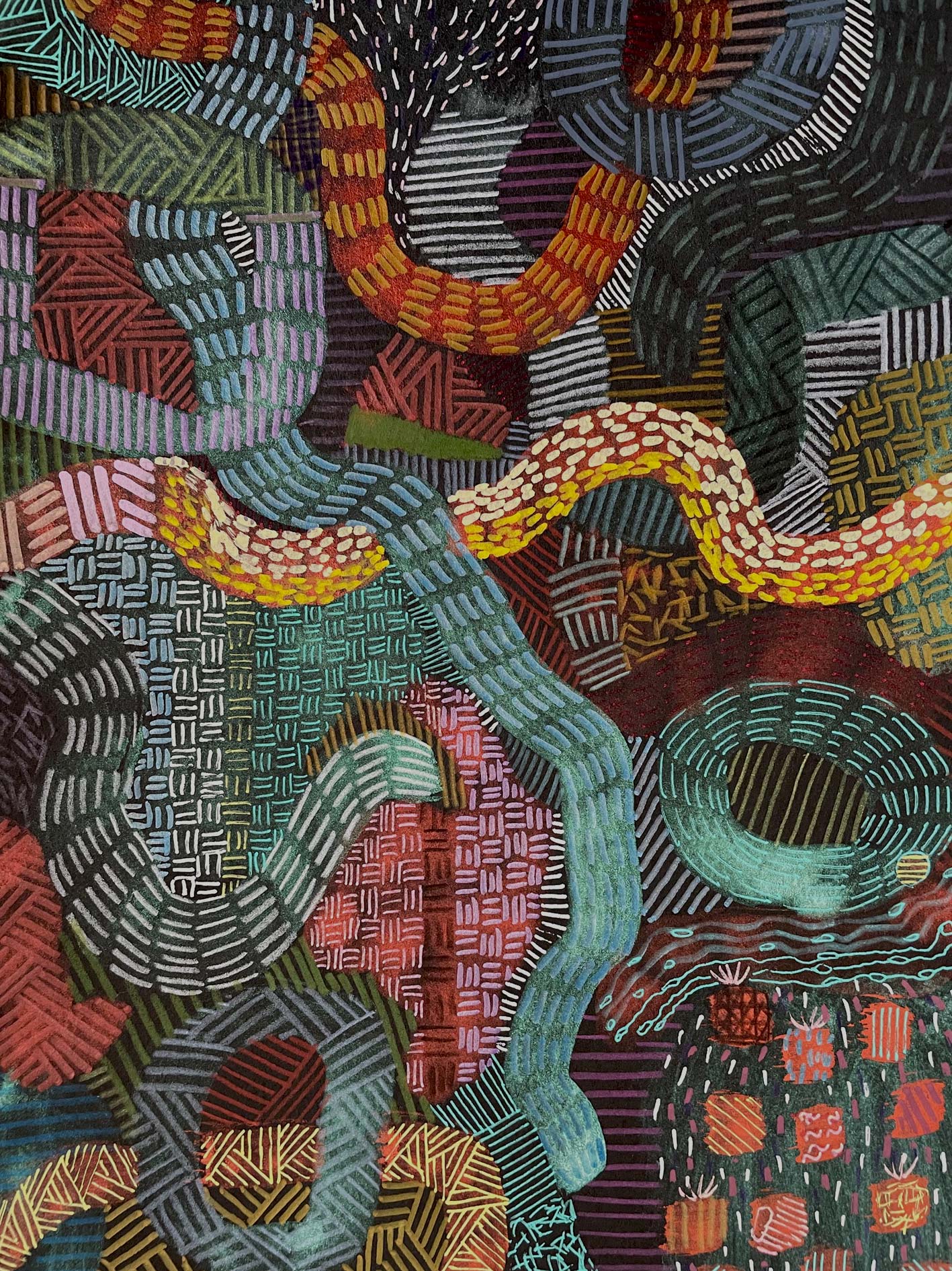 Patterns structure the composition and determine its internal rhythm. They create a visual framework within which wholeness simultaneously forms and dissolves.