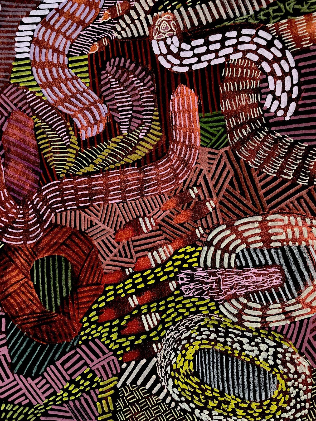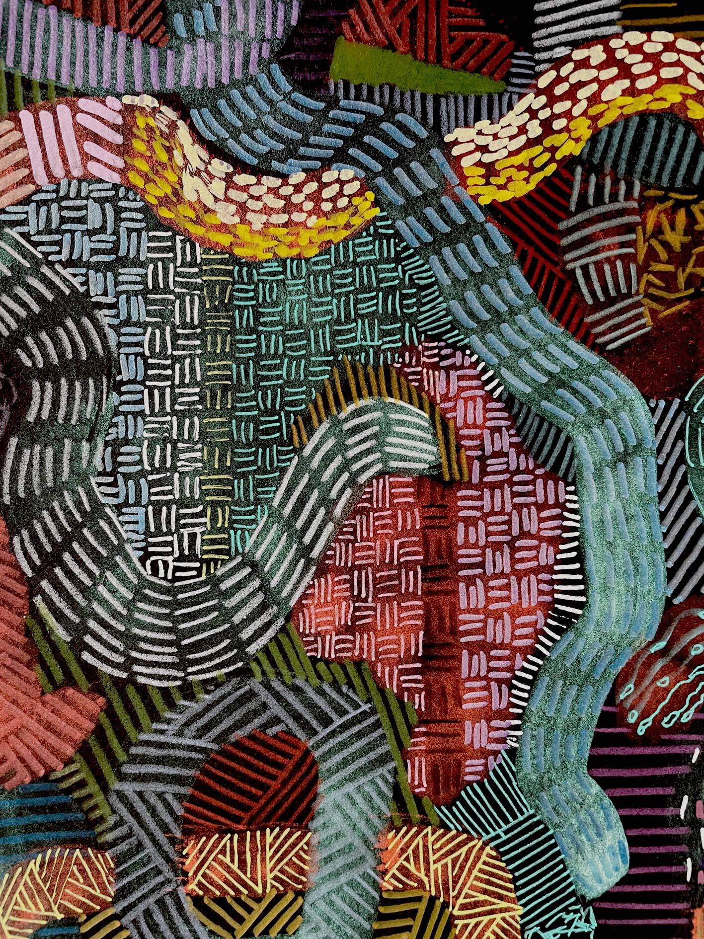 Pattern strukturieren die Komposition und bestimmen ihren inneren Rhythmus. Sie schaffen ein visuelles Gerüst, innerhalb dessen sich Ganzheit zugleich aufbaut und wieder auflöst.